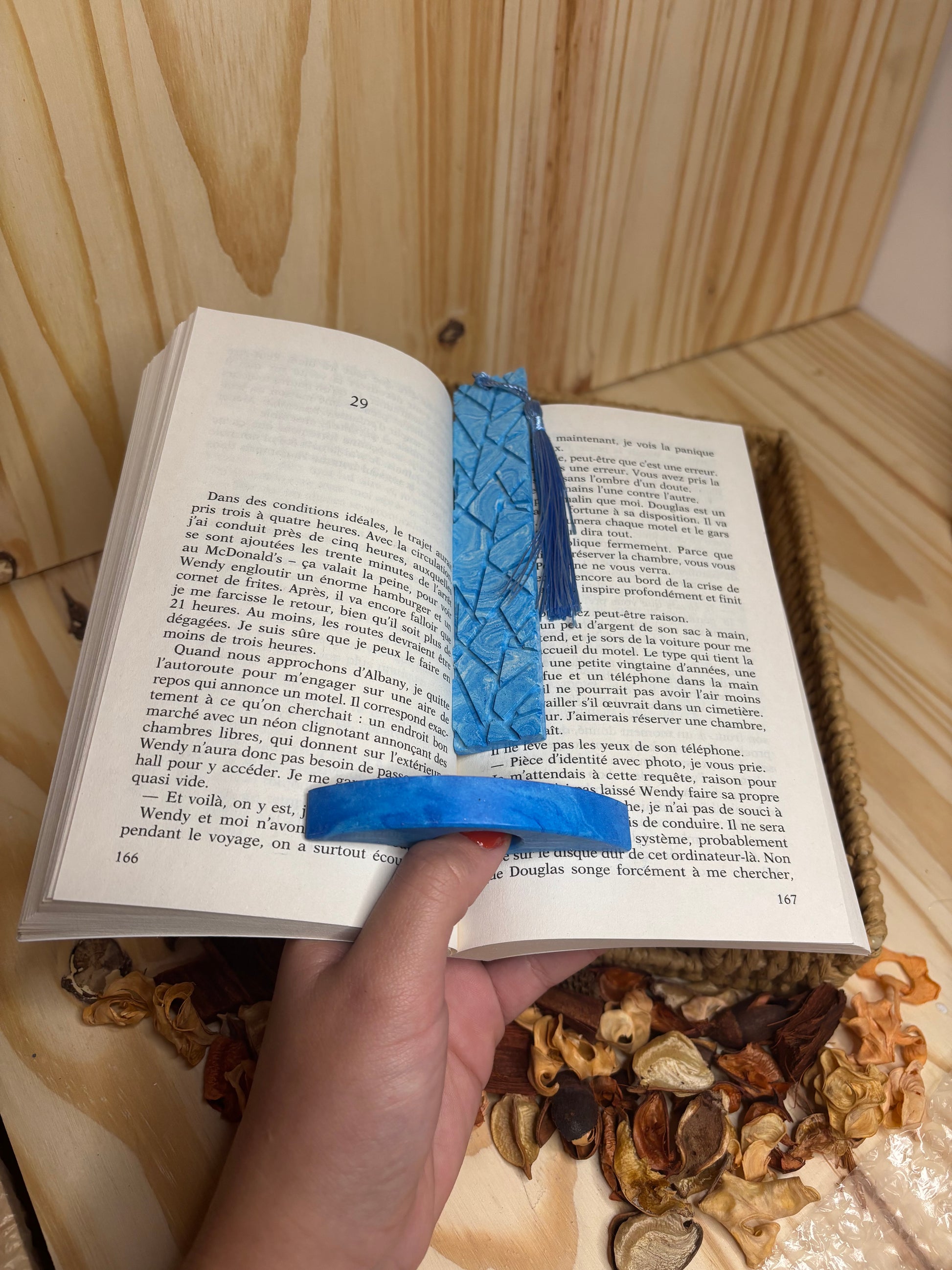 Le lot lecteur comporte un marque page pour savoir où tu en es ET une bague de lecture pour tenir tes pages lorsque tu lis, ça évite de te tordre le pouce dans tous les sens...
